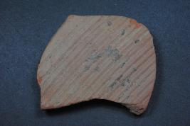 | Description / विवरण | It is a broken fragment of a pot made of terracotta was found in Banawali trench no. ZB2, layer no.2. It is well fired and color is red. It has some cut marks and flaking on its surface. It is wheel made pottery. Its outer side carved by incised line design. |