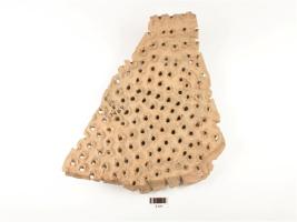 | Description / विवरण | A fragment of perforated jar of red ware, convex profile and flat base. |