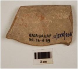 | Description / विवरण | Fragment of dull red ware vase, everted rim, medium fabric and well baked. |