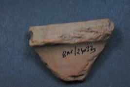 | Description / विवरण | It is a broken fragment of a stand made of terracotta was found in Banawali trench no. YZB3, layer no.4. It is well fired and color is red. Its outer side is carved by cut marks and flaking. It is a wheel made pottery. |