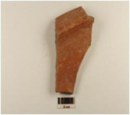| Description / विवरण | A fragment of jar of red ware has flaring rim of coarse fabric and treated with red slip on exterior. |