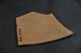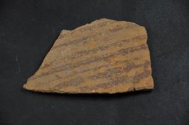 | Description / विवरण | This is a broken fragment of a pot made of terracotta and was found in Banawali. It is well fired and colour is red. There are some chocolate slip line design on its surface. Surface is rough and flaked. It is a wheel made pottery. |