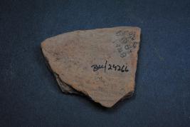 | Description / विवरण | It is a broken fragment of a pot made of terracotta was found in Banawali trench no. ZA4, layer no.6. It is well fired and color is red. It has some cut marks and flaking on its surface. It is wheel made pottery. |
