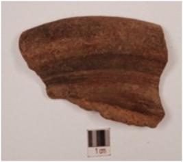 | Description / विवरण | Fragment of a vase of red ware, treated with slip has flaring bud shaped rim and concave neck. |