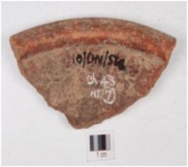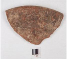 | Description / विवरण | A fragment of red ware dish having clubbed rim, redlsip treatment is given on surface medium fabric and well baked. |