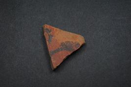 | Description / विवरण | It is a broken fragment of a pot made of terracotta was found in Banawali trench no. YO1, layer no.1. It is well fired and color is red. It has some cut marks and flaking on its surface. It is a wheel made pottery. Its outer side carved by black slip design. |