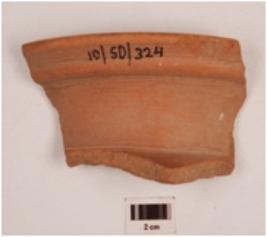 | Description / विवरण | A fragment of vase of red ware, treated with red silp, has out curved rim with flat top, ridge on the exterior concavity below and convex profile. |