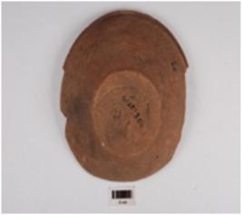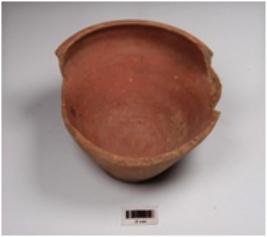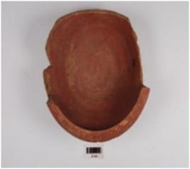 | Description / विवरण | Fragment of a bowl of red ware, treated with red slip interior, nail headed rim, tapering profile and disc base. |