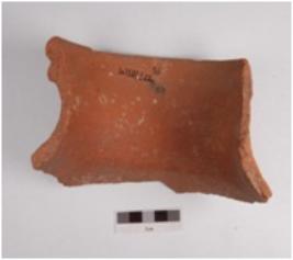| Description / विवरण | Fragment of a jar of red ware, treated with red slip on both sides, thickened with groove rim, concave neck and spreading profile. |