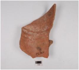 | Description / विवरण | Fragment of a handi of red ware, treated with red slip on the exterior and carination at the waist. |