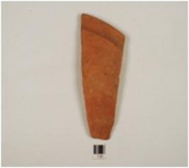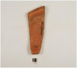 | Description / विवरण | Fragment of a bowl of red ware with nail headed rim, groove on neck, medium fabric and showing an oxidized core. |