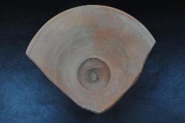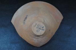 | Description / विवरण | This is a lid made of terracotta and was found in Agroha trench no.XF2, layer no.2. It is well fired and colour is red. It has fine red slip on it. There are some cut marks on its surface. It may be used for cover the dish. Surface is rough and flaked. |