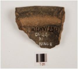 | Description / विवरण | A fragment of vase of black ware has externally thickened rim with depression on the interior side, concave neck of medium fabric. |