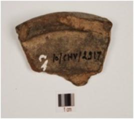 | Description / विवरण | A fragment of bowl of red ware has slightly out turned rim, with projection, of medium fabric. |