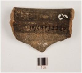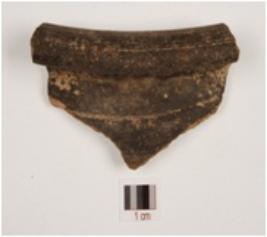 | Description / विवरण | A fragment of vase of grey ware has out curved rim, concave neck of medium fabric and treated with black slip. |