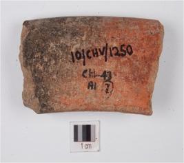 | Description / विवरण | Fragment vase of redware with an outcurved rim and concave neck, medium fabric, showing incomplete oxidization and treated with red slip. |