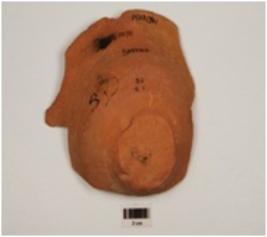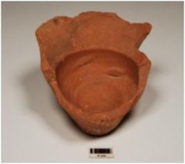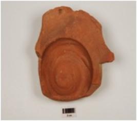 | Description / विवरण | A fragment of bowl of red ware, treated with red slip, has obliquelly splayed out rim, convex profile and foot base. |