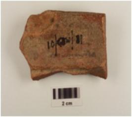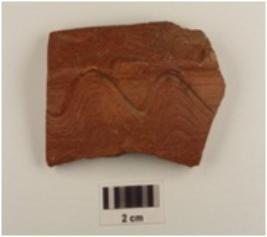 | Description / विवरण | Fragment of a basin of red ware,treated with red slip on exterior,has incurved rim, incised with multiple wavy horizontal lines on exterior. |