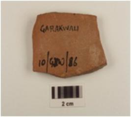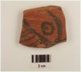 | Description / विवरण | Fragment of red ware,treated with red slip on exterior and painted with circlet filled with dot and indeterminate pattern. |