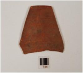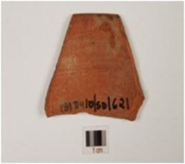 | Description / विवरण | Fragment of a bowl of red ware treated with red slip on both sides, has flaring rim and convex profile. |