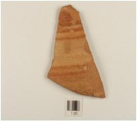 | Description / विवरण | Fragment of buff ware, vessel has a black painting above and horizontal lines in red pigment. |