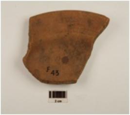 | Description / विवरण | Fragment of red ware bowl, flaring rim, carinated shoulder, tapering profile, medium fabric and well baked. |