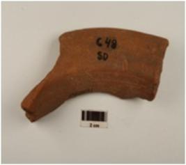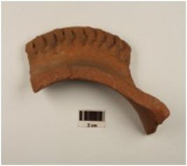 | Description / विवरण | Fragment of red ware vase out curved rim with an applique pinched decoration on outer edge, concavity below medium fabric and well baked. |