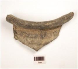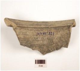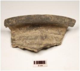 | Description / विवरण | A fragment of vase of black ware with externally thickened rim, concave neck and medium fabric. |