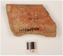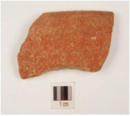 | Description / विवरण | Fragment of a bowl of red ware with inverted rim, convex sides, medium fabric, smoky section and surface treated with red slip. |