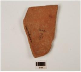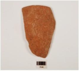 | Description / विवरण | Fragment of a bowl of red ware has vertical featureless rim and convex profile. |