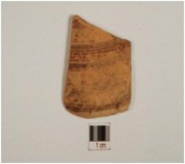 | Description / विवरण | Potsherd of a vessel of buff ware painted with faded horizontal lines in black pigment and fine fabric. |