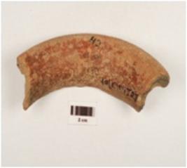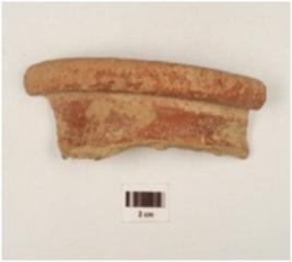 | Description / विवरण | Fragment of vase of red ware with outcurved thickened rim and medium fabric |
