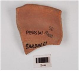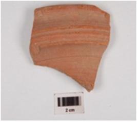 | Description / विवरण | Fragment of a vase of red ware, treated with red slip on the exterior, has slightly out-curved with groove rim and concave neck. |