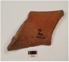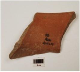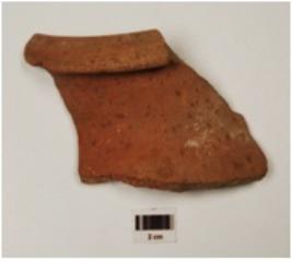 | Description / विवरण | A fragment of a vase of red ware, treated with red slip has flaring externally thickend grooved rim and concave neck. |