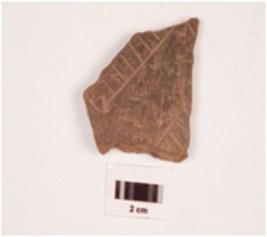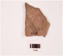 | Description / विवरण | Fragment of a wheel made terracotta pot sherd with geometrical design on the surface, well baked and surface covered in red slip. |
