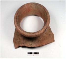 | Description / विवरण | A fragment of vase of red ware, out curved thickened rim, concave neck, spreading shoulder and treated with red slip. |