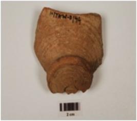 | Description / विवरण | A fragment of base of red ware treated with red slip and has disc base. |