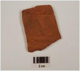| Description / विवरण | A fragment of red ware, treated with red slip, multiple wavy grooves on the exterior. |