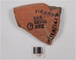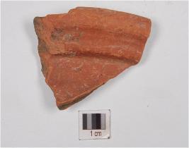 | Description / विवरण | Fragment of a vase of red ware treated with red slip on both sides, has flaring externally thickened rim with a groove and convex neck. |