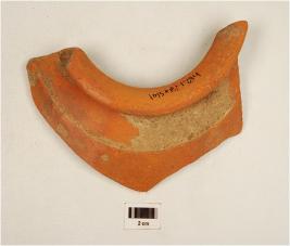 | Description / विवरण | Fragment of a vase of red ware with out-curved rim, ridge on shoulder and medium fabric. |
