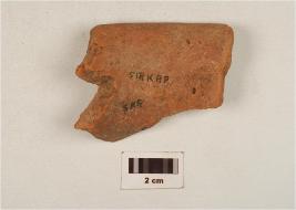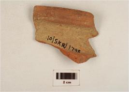 | Description / विवरण | Fragment of a vase of red ware with out-curved rim and medium fabric. |