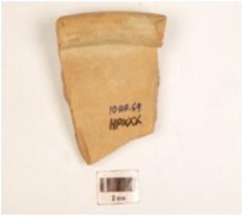 | Description / विवरण | Fragment of a dish of dull red ware in curved thickened rim and fine fabric. |