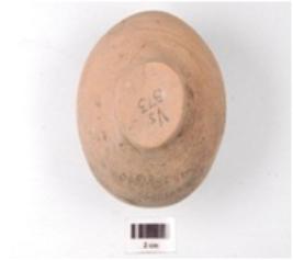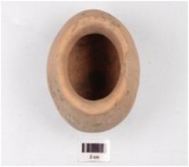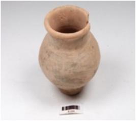 | Description / विवरण | A miniature dull red ware vase out curved rim globular body and foot base. |