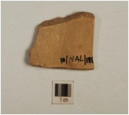 | Description / विवरण | Potsherd of buff ware vessel, vertical and horizontal bands painted with chocolate brown pigment on exterior, fine fabric and well baked. |