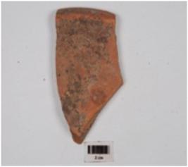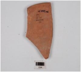 | Description / विवरण | Fragment of a bowl of red ware having obliquelly splayed out rim, tapering profile, surface treated with red slip and medium fabric. |