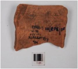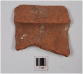 | Description / विवरण | Fragment of a vase of red ware having obliquelly splayed out rim, receeding profile and medium fabric. |