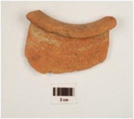 | Description / विवरण | Fragment of vase of red ware with obliquelly splayed in rim, constricted neck, globular like body, medium fabric and traces of red slip |