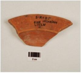 | Description / विवरण | A fragment of a bowl of Red slipped ware has obliquelly splayed out rim and convex profile. |