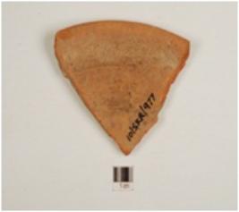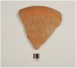 | Description / विवरण | A fragment of a bowl of red slipped ware has incurved rim and tapering profile. |