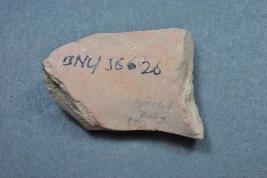 | Description / विवरण | It is a broken rim fragment of a pot made of terracotta was found in Banawali trench no. XF2, layer no.4. It is well fired and color is red. It has some cut marks and flaking on its surface. It is wheel made pottery. |